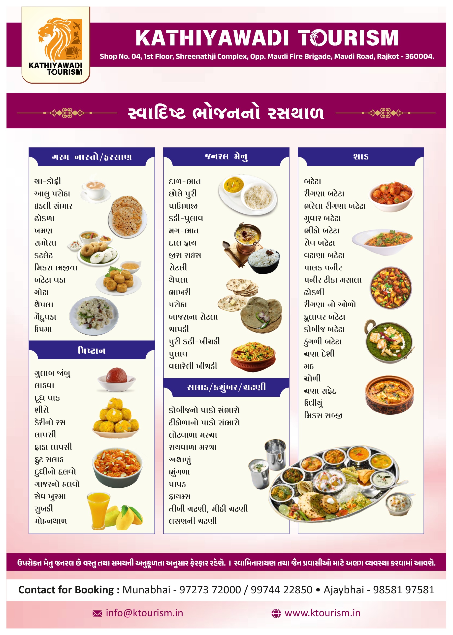 • • Breakfast, Lunch, Dinner cooked by our Gujarati kitchen (Pure Veg.)